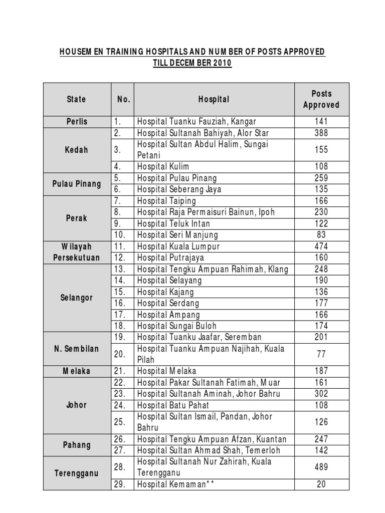 List Of Hospital For Housemanship In Malaysia 2018 Eliezercxt